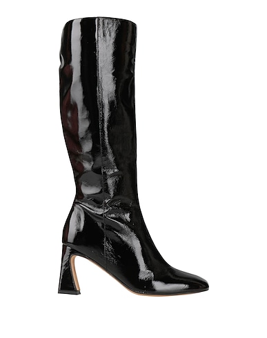 boots, patent leather, plain colour, no appliqués, leather lining, zip fastening, round toe, square heel, leather sole, contains non-textile parts of animal origin