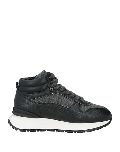 high-top trainers, flannel, two-tone, no appliqués, lace-up, zip fastening, round toe, leather lining, rubber sole, contains non-textile parts of animal origin
