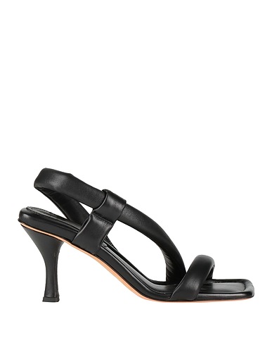 sandals, leather, no appliqués, plain colour, leather lining, square toe, spool heel, leather sole, contains non-textile parts of animal origin