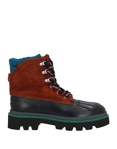 padded ankle boots, glossed-leather, suede, multicolour, brand logo, synthetic filling, lace-up, round toe, low heel, lug sole, contains non-textile parts of animal origin