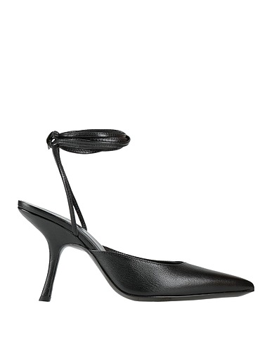 pumps, pebbled-leather, plain colour, no appliqués, lace-up, pointed toe, spool heel, leather sole, leather lining, contains non-textile parts of animal origin