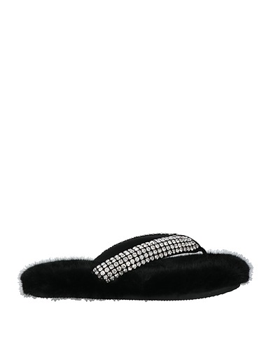 thong sandals, scuba, plain colour with appliqués, crystals, plush fabric inner, round toe, flat, rubber sole