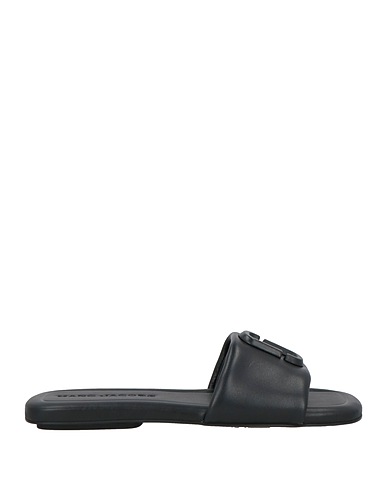 slide sandals, leather, brand logo, plain colour with appliqués, leather lining, square toe, flat, rubber sole, contains non-textile parts of animal origin, large sized