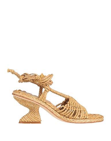 sandals, raffia, plain colour, no appliqués, leather lining, ties at ankle, round toe, spool heel, rope heel, leather/rubber sole, contains non-textile parts of animal origin