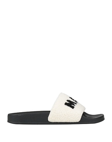 pool slides, terrycloth, two-tone, brand logo, fabric inner, round toe, flat, rubber sole