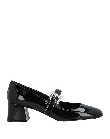 mary jane pumps, patent leather, plain colour with appliqués, crystals, leather lining, buckle fastening, square toe, square heel, covered heel, leather sole, contains non-textile parts of animal origin