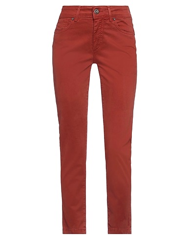 denim, leather applications, brand logo, solid colour, coloured wash, high waisted, tapered leg, slim-leg pants, zipper closure, button closing, multipockets, stretch, contains non-textile parts of animal origin, skinny model