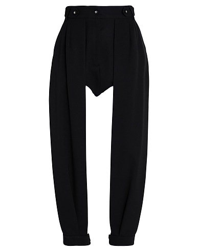 tapered trousers, twill, wool, plain colour, darts, high waisted, belt loops, regular fit, built-in shorts, 1 button, zip fastening, dry clean, do not bleach, do not tumble dry