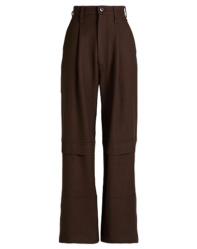 wide-leg trousers, wool, flannel, plain colour, darts, high waisted, regular fit, zip fastening, button fastenings, zips at hem, slit pockets, welt pockets, dry clean, do not bleach, do not tumble dry, contains non-textile parts of animal origin