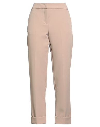 straight-leg trousers, crepe, plain colour, brand logo, low waisted, regular fit, hook fastenings, zip fastening, multipockets, stretch, hand wash or dry clean, do not bleach, do not tumble dry, cropped