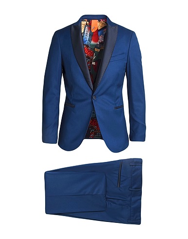 single-breasted suit, twill, satin, two-tone, detachable application, lapel collar, long sleeves, fully lined, button fastenings, multipockets, mid rise, belt loops, stretch, machine wash or dry clean, do not bleach, do not tumble dry