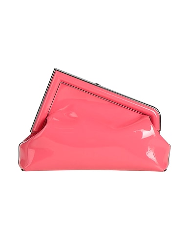 medium, coated fabric, varnished effect, brand logo, solid colour, framed closure, detachable shoulder strap, clutch