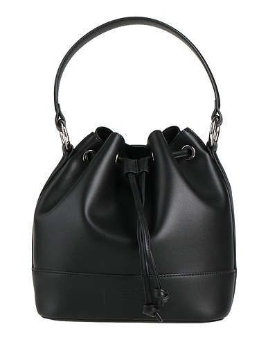 bucket bag, leather, plain colour, brand logo, drawstring fastening, leather lining, internal pocket, bag handle, detachable shoulder strap, medium, contains non-textile parts of animal origin
