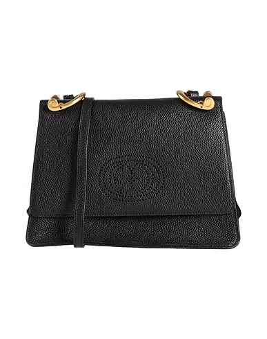 flap bag, pebbled-leather, plain colour, brand logo, adjustable fastening, leather lining, adjustable shoulder strap, leather straps, medium size, contains non-textile parts of animal origin