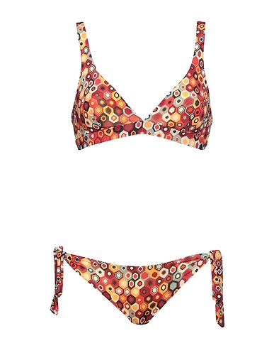 synthetic jersey, geometric-print, no appliqués, tie fastening, fully lined, no underwire bra, stretch, hand wash, do not bleach, do not tumble dry
