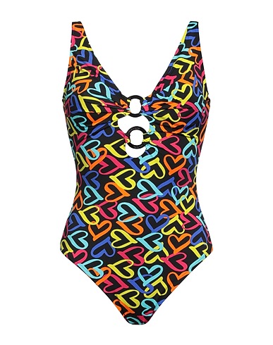 swimsuit, synthetic jersey, multicolour, embellished, brand logo, underwire bra, stretch, machine wash or dry clean, do not bleach, do not tumble dry