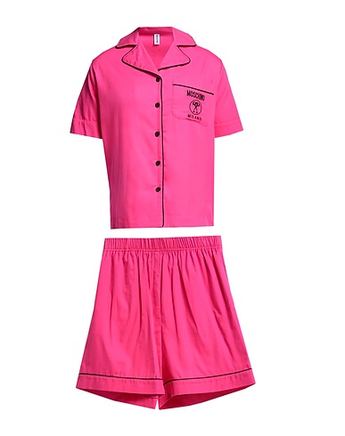twill, brand logo, embellished, plain colour with appliqués, lapel collar, short sleeves, button fastenings, multipockets, elasticised waist, pyjama set