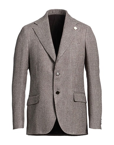 cool wool, detachable application, houndstooth, lapel collar, long sleeves, partially lined, button fastenings, multipockets, dual back vents, dry clean, single-breasted blazer