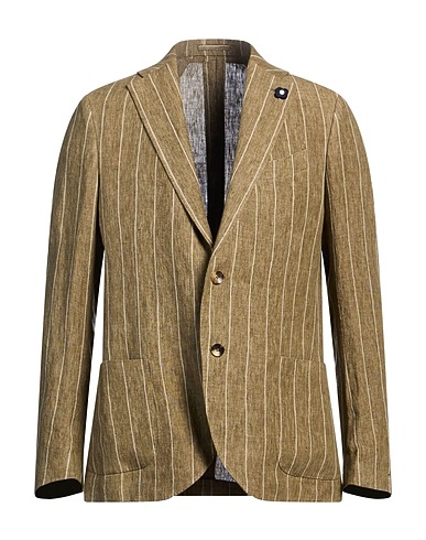 single-breasted blazer, linen, striped, brooch, lapel collar, long sleeves, partially lined, button fastenings, multipockets, one chest pocket, dry clean, do not bleach, do not tumble dry