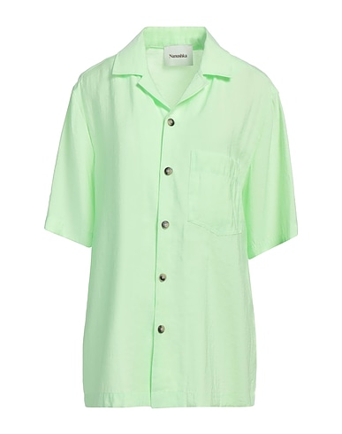 shirt, woven, no appliqués, plain colour, camp collar, short sleeves, button fastenings, one chest pocket, machine wash or dry clean, do not bleach, do not tumble dry