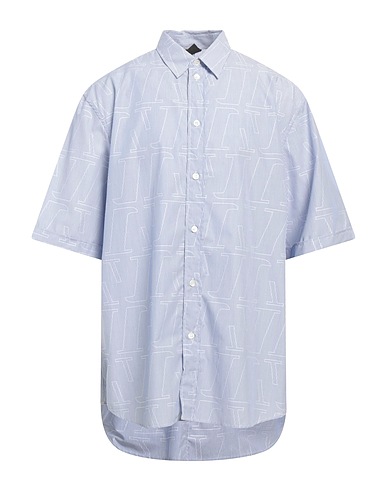 camisa de corte estándar, popelina, estampado a rayas, estampado con logo, sin aplicaciones, cuello clásico, manga corta, puños con botones, cierre con botones