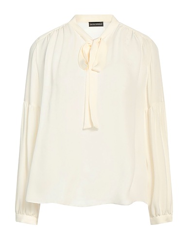 crepé, logotipo de la marca, monocolor, manga larga, puños con botones, interior sin forro, tallaje pequeño, blusa con lazo