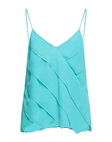 tops de tirantes, crepé, monocolor, cristales, de volantes, cuello ancho, sin mangas , interior forrado
