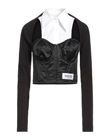 top, punto jersey, raso, estampado bicolor, con adornos, cuello clásico, manga larga, cierre con corchetes, tejido elástico