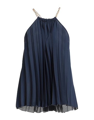 top, crepé, liso con aplicaciones, tableado, con adornos, cuello ancho, sin mangas