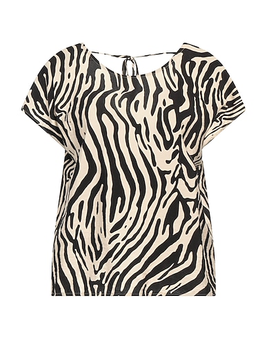 top, tejido, estampado de cebra, sin aplicaciones, cuello ancho, manga corta, cierre con nudo