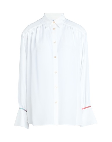 camisa, crepé, liso con aplicaciones, fruncido, cuello clásico, manga larga, cierre con botones