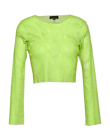 tejido de rejilla, cristales, monocolor, cuello redondo, manga larga, top
