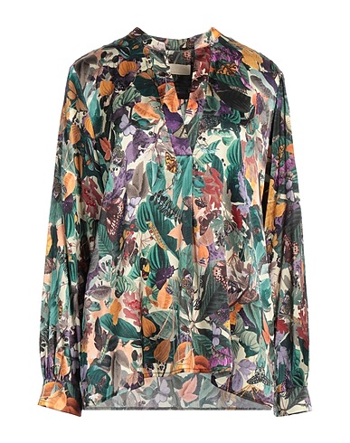 raso, sin aplicaciones, estampado floral, escote profundo, manga larga, puños con botones, sin bolsillo, tejido elástico, top
