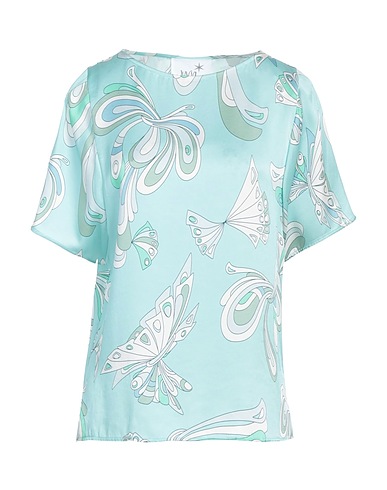 raso, sin aplicaciones, estampado multicolor, cuello ancho, manga corta, sin bolsillos, bajo con aberturas laterales, tejido elástico, lavado a mano o limpieza en seco, no lavar con lejía , no secar en secadora, top
