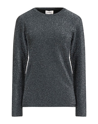 tejido en punto, efecto metálico, punto ligero, monocolor, logotipo de la marca, cuello redondo, manga larga, tejido elástico, lavado a máquina o limpieza en seco, no lavar con lejía , no secar en secadora
