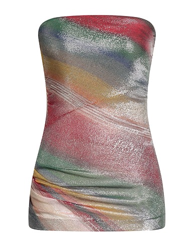 top sin mangas, tejido en punto, efecto metálico, punto ligero, estampado multicolor, drapeado, sin tirantes, interior parcialmente forrado, lavar a máquina, no lavar con lejía , no secar en secadora, esta marca talla pequeño