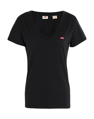 camiseta básica, punto jersey, monocolor, logotipo de la marca, escote en v, manga corta