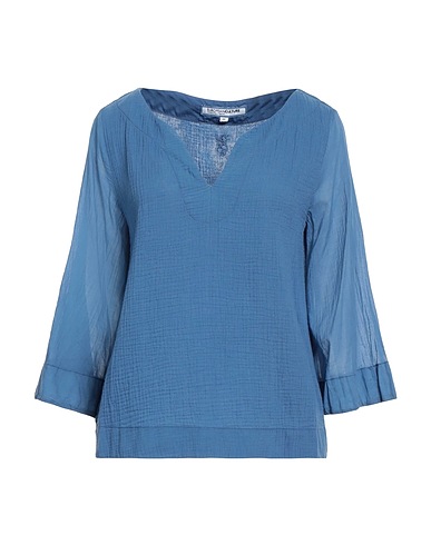 tejido, crepé, logotipo de la marca, monocolor, escote en v, mangas tres cuartos, sin bolsillo, top