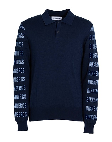 tejido en punto, punto ligero, logotipo de la marca, estampado bicolor, cuello con botones, manga larga