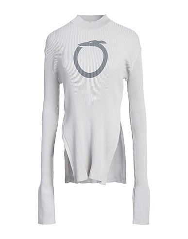 tejido en punto, punto ligero, tejido elástico, logotipo de la marca, liso con estampado, cuello alto, manga larga, sin bolsillos