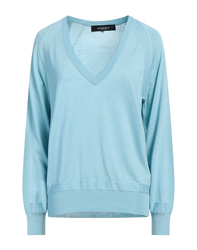 tejido en punto, punto ligero, logotipo de la marca, monocolor, escote en v, manga larga, sin bolsillo