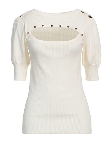 tejido en punto, punto ligero, liso con aplicaciones, logotipo de la marca, cut-out, tachuelas, cuello redondo, manga corta, lavar a mano, no lavar con lejía , no secar en secadora