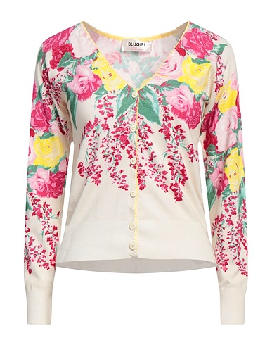 tejido en punto, punto ligero, estampado floral, logotipo de la marca, manga larga, cierre con botones, lavar a mano, no lavar con lejía , no secar en secadora