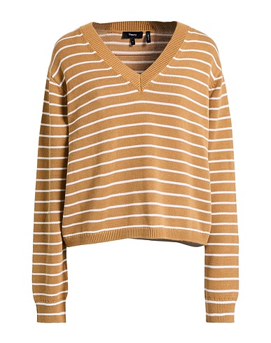 tejido en punto, punto ligero, modelo ribeteado, estampado a rayas, escote en v, manga larga, limpiar en seco, no lavar con lejía , no secar en secadora