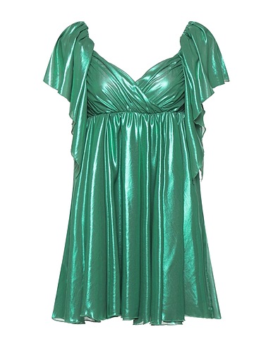 crepé, efecto metálico, fruncido, monocolor, escote profundo, manga corta, interior forrado, sin bolsillos, vestido línea a