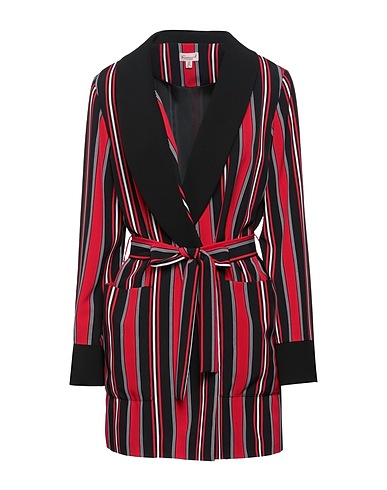 chaqueta con cinturón, raso, estampado a rayas, cinturón, cuello con solapas , abotonadura simple, manga larga, interior forrado, cierre con corchetes, cierre con botones ocultos, bolsillo aplicado, limpiar en seco, no secar en secadora