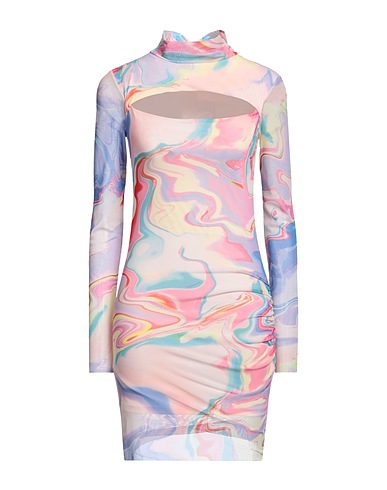 tul, logotipo de la marca, cut-out, fruncido, estampado multicolor, cuello alto, manga larga, interior forrado, sin bolsillos, tejido elástico, lavado a mano o limpieza en seco, no lavar con lejía , no secar en secadora, vestido ajustado