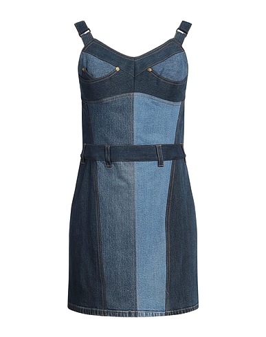 vestido ajustado, algodón denim, patchwork, logotipo de la marca, escote en corazón, lavado oscuro , sin mangas , interior sin forro, sin bolsillos, tejido elástico, lavado a máquina o limpieza en seco, no lavar con lejía , no secar en secadora