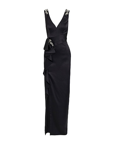 vestido largo, raso, cristales, cuentas, aberturas, liso con aplicaciones, escote profundo, sin mangas , interior forrado, cierre con cremallera, cierre con corchetes, sin bolsillos, abertura lateral, tejido elástico, limpiar en seco, no lavar con lejía , no secar en secadora