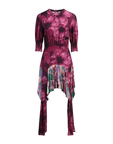 vestido línea a, crepé, estampado floral, tableado, punto inglés, cuello redondo, mangas tres cuartos, interior sin forro, cierre con cremallera, sin bolsillos, bajo de volantes, lavar a máquina, no lavar con lejía , no secar en secadora